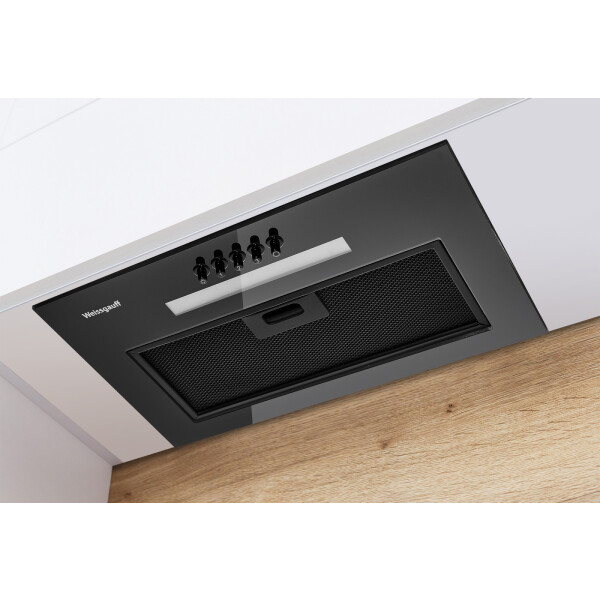 Полностью встраиваемая вытяжка от Weissgauff шириной всего 45 см, произведенная в Европе, обладающая уверенной производительностью и оснащенная интуитивно понятным кнопочным управлением, выполнена в дизайне врезного блока с панелью стильного черного цвета!