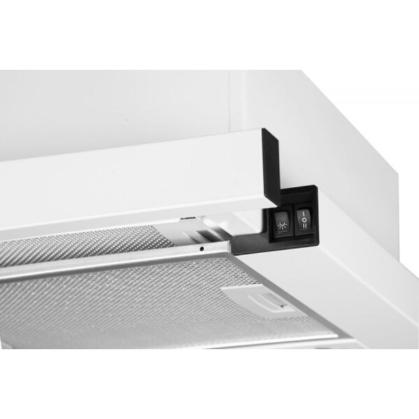 Встраиваемая в верхний подвесной шкаф телескопическая вытяжка от Weissgauff шириной 50 см, обладающая впечатляющей производительностью 600 м3/ч и низким уровнем шума 55 дБ, выполненная в белом цвете, не только порадует своей функциональностью, но и станет настоящим украшением вашей кухни!