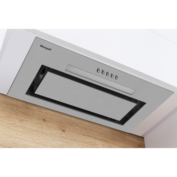 Полностью встраиваемая вытяжка от Weissgauff, выражающая в себе наш главный принцип Качество, доступное каждому, оснащена интуитивно понятным кнопочным управлением, выполнена в дизайне врезного блока с панелью в цвете нержавеющая сталь!