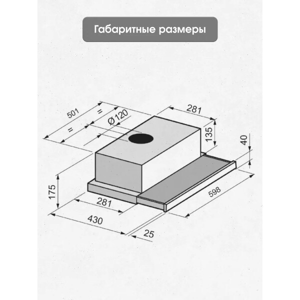 | Диаметр патрубка воздуховода | 120