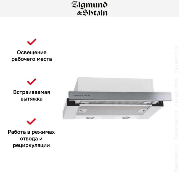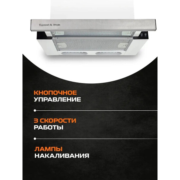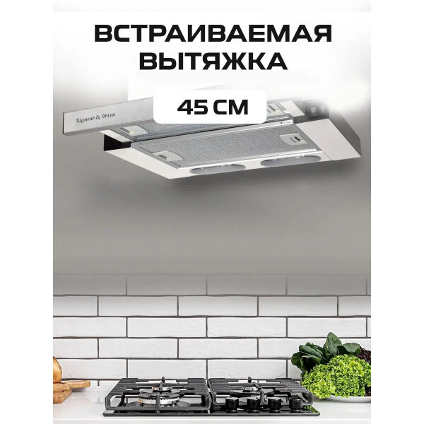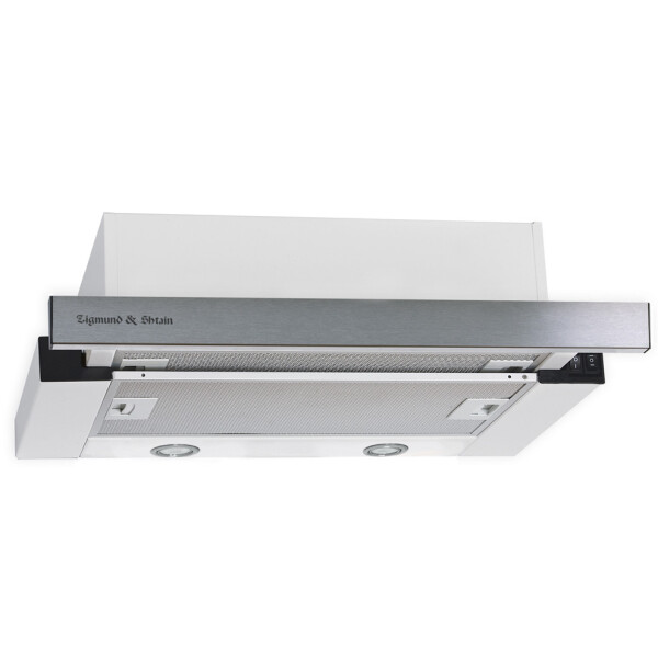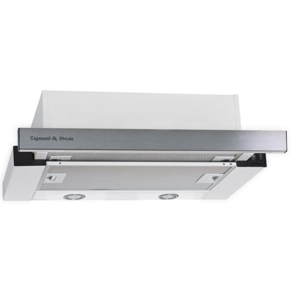 Встраиваемая вытяжка с выдвижным экраном Zigmund Shtain K 005.41 S имеет ширину всего 45 см, что редко можно встретить у других производителей вытяжек. Следовательно эту модель можно устанавливать в шкаф шириной от 45 см и она подойдет для небольших кухонь. Удобное управление и производительность 550 м/час, сделают эту модель отличным помощником на Вашей кухне. У вытяжки имеется два режима работы: отвод в вентиляцию и рециркуляция через угольные фильтры. Фронтальная панель выполнена в нержавеющей стали.