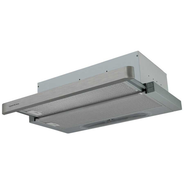 Zigmund & Shtain K 010.6 S можно назвать стандартной вытяжкой для стандартных кухонь. Это встраиваемая модель, которая монтируется непосредственно в навесные шкафчики, расположенные над плитой. Она имеет стандартную ширину в 60 см, но благодаря выдвижной панели может увеличивать площадь захвата воздуха и очищать до 450 м3/час.