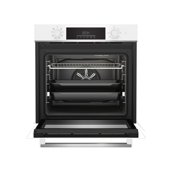 Белый духовой шкаф с LED дисплеем, поворотными переключателями и 8 режимами готовки, в числе которых гриль, разморозка и 3D приготовление, позволяющее готовить несколько блюд одновременно. Духовка имеет класс энергопотребления А и большой объем 72 л, занимая всего лишь 56 сантиметров в ширину. Благодаря съемной внутренней поверхности дверцы и каталитической задней стенке за духовым шкафом легко ухаживать и поддерживать его в идеальном состоянии без лишних усилий. В комплекте: стандартный противень, глубокий противень и решетка.