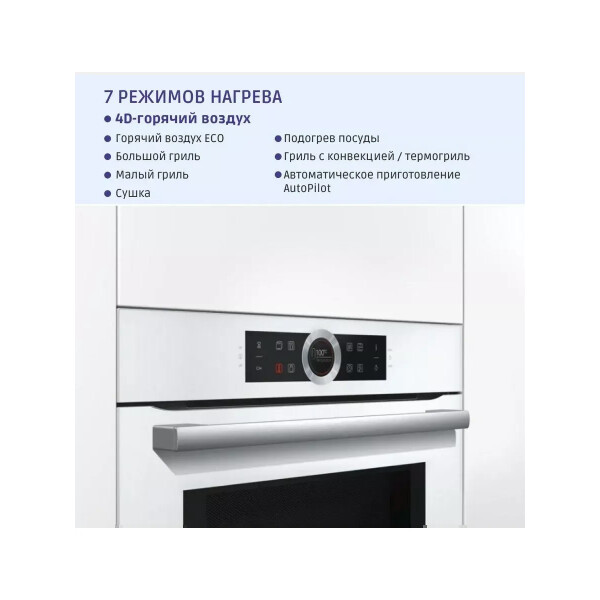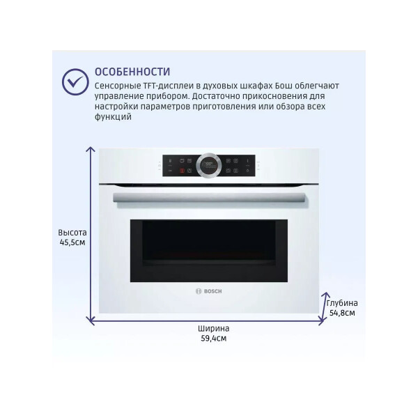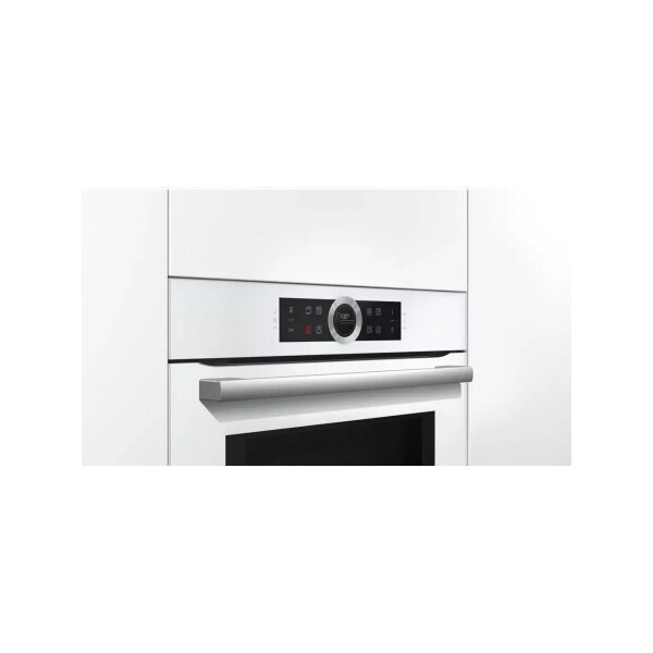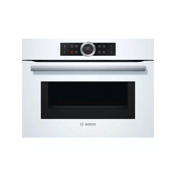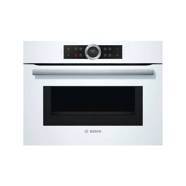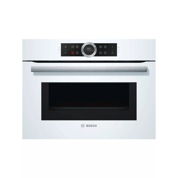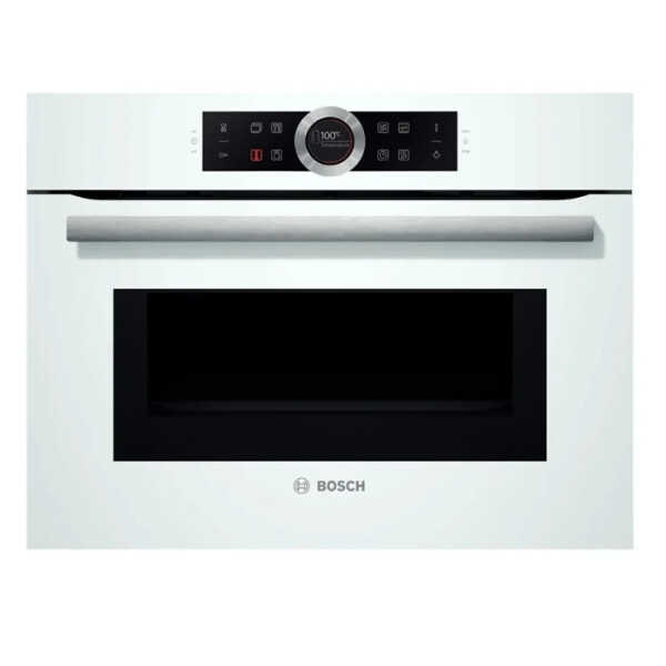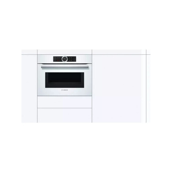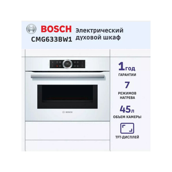 Компактный духовой шкаф Bosch CMG633BW1 модель белого цвета с фурнитурой из нержавеющей стали сочетается с полноразмерными моделями 8 серии, их можно комбинировать. Главная особенность сочетание свойств духовки и микроволновки. 14 автоматических режимов приготовления при температуре от 30 275 C и 6 уровней воздействия микроволн предоставляют широкие возможности для создания самых разных блюд.