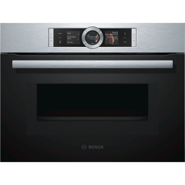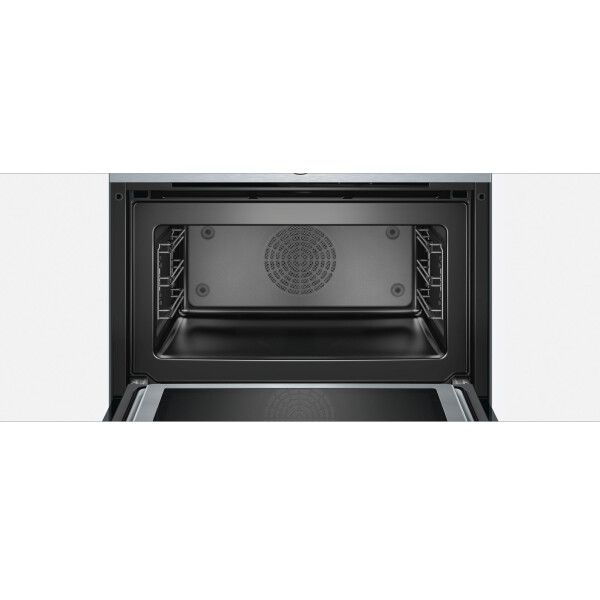 Компактный духовой шкаф CMG636BS1 выполнен в одном стилевом решении с полноразмерной техникой, что позволяет создавать гармоничные комбинации. Функции и режимы прибора можно устанавливать с помощью кнопок, сенсорных полей, сенсорных дисплеев и поворотного регулятора ControlRing. Традиционные режимы нагрева комбинируются с микроволнами. Вентилятор защищает прибор от перегрева. С помощью функции Быстрый разогрев можно сократить время нагрева камеры. Горячий воздух Eco приготовление блюд на одном уровне с оптимизированием потреблением электроэнергии и без предварительного разогрева.