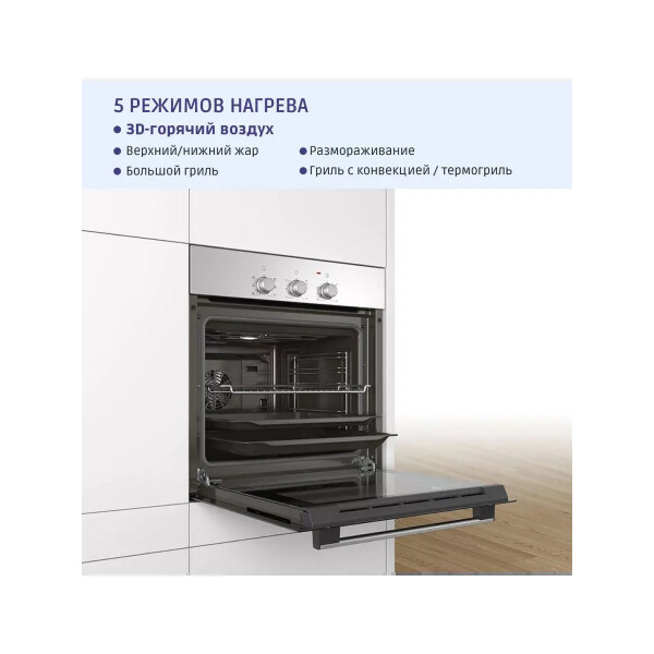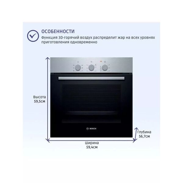 Духовой шкаф Bosch HBF011BR0Q имеет 5 режимов нагрева. Дверца из двойного прочного стекла гарантирует безопасность и имеет красивый вид. Функция 3D-горячий воздух распределит жар на всех уровнях приготовления одновременно. Большой объем камеры 66 л.