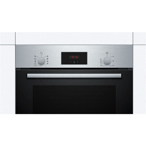 Электрический духовой шкаф Bosch HBF114BS1 имеет объем 66 л. На дисплее отображается время работы и выбранный режим. С помощью внутреннего галогенового освещения легко наблюдать за процессом приготовления.