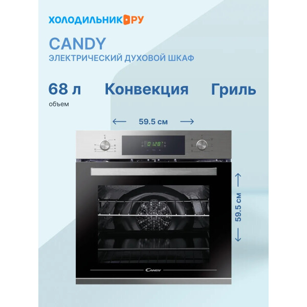 Производитель candy, способ подключения электрическая, объем духовки 70 л, тип духовки независимая, класс энергопотребления А, высота 59 см, мощность подключения 2 квт, глубина 56 см, максимальная температура 250 °c, тип гриля электрический, число режимов нагрева 6, переключатели утапливаемые, тип таймера звуковой с отключением, цвет корпуса серебристый, дверца духовки откидная, очистка духовки гидролизная, количество стекол дверцы духовки два, современный дизайн.