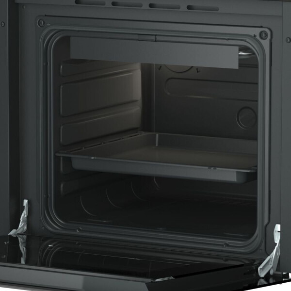 Дверца духовки выполнена из двойного закалённого стекла, что позволяет контролировать нагрев поверхности, гарантируя безопасность эксплуатации.