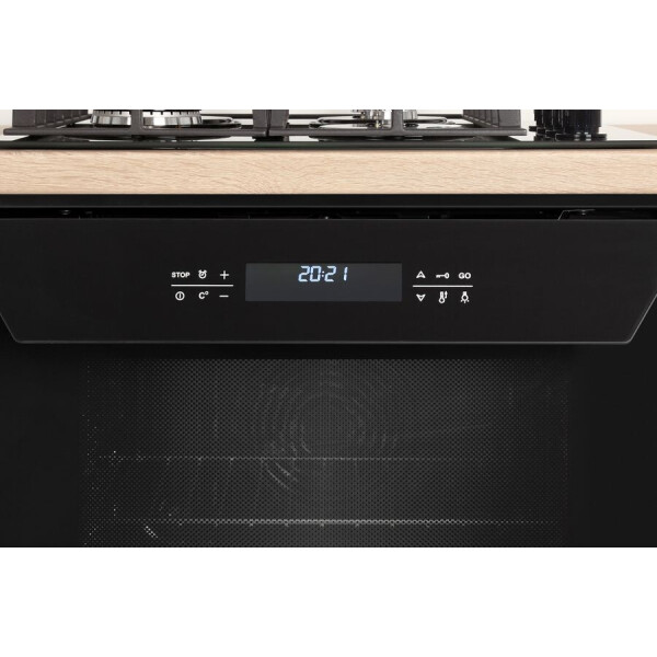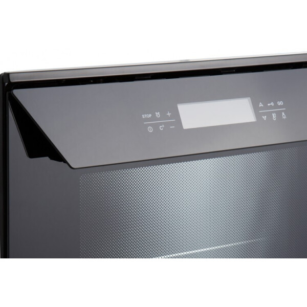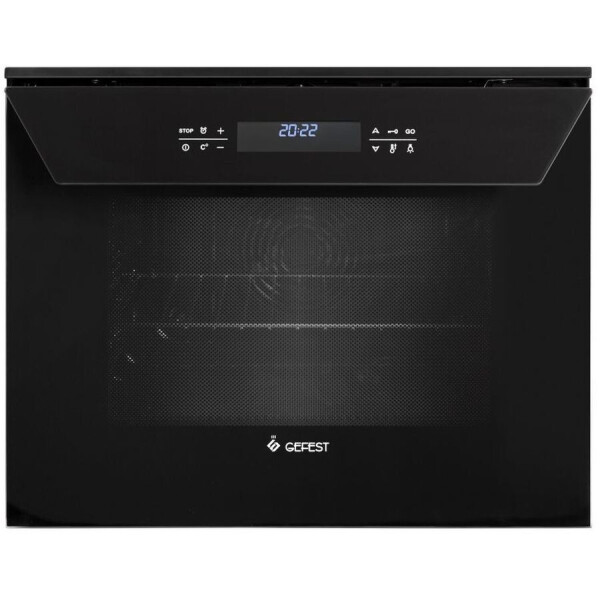 Исполнение с сенсорной панелью, расположенной на дверце. Жарочный шкаф оборудован съемным вертелом и шашлычницей, помимо верхнего и нижнего нагревательного элемента есть кольцевой ТЭН, режимы работы - от разморозки продуктов до одновременного запекания на двух уровнях или приготовления пиццы (усиленный нагрев с конвекцией). Для безопасности эксплуатации предусмотрена блокировка панели от случайного нажатия, доводчик обеспечивает плавность открытия/закрытия дверцы, реализован холодный фронт (три стекла в дверце, не обжигает при касании). Можно настроить время приготовления, есть функция отложенного старта.