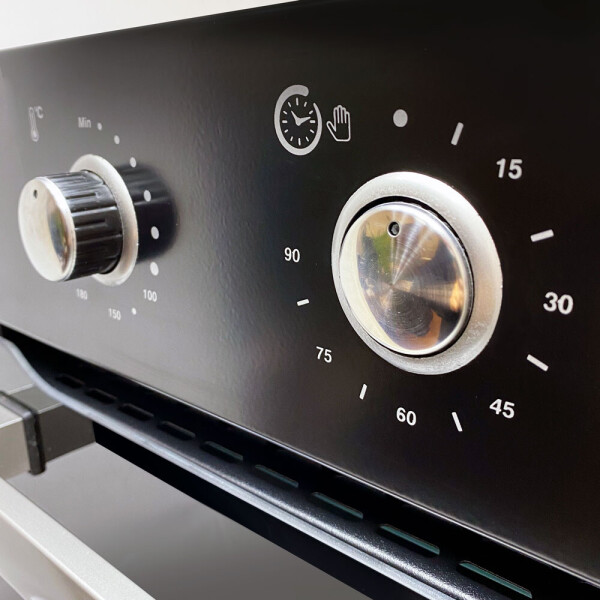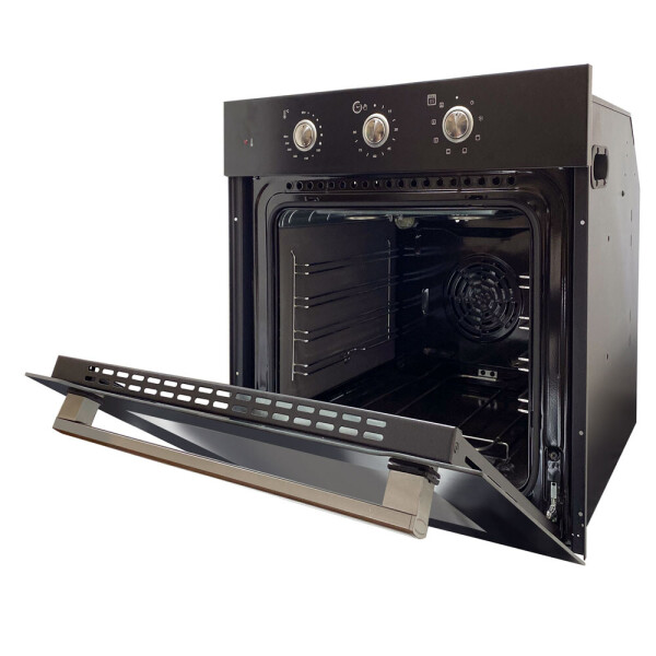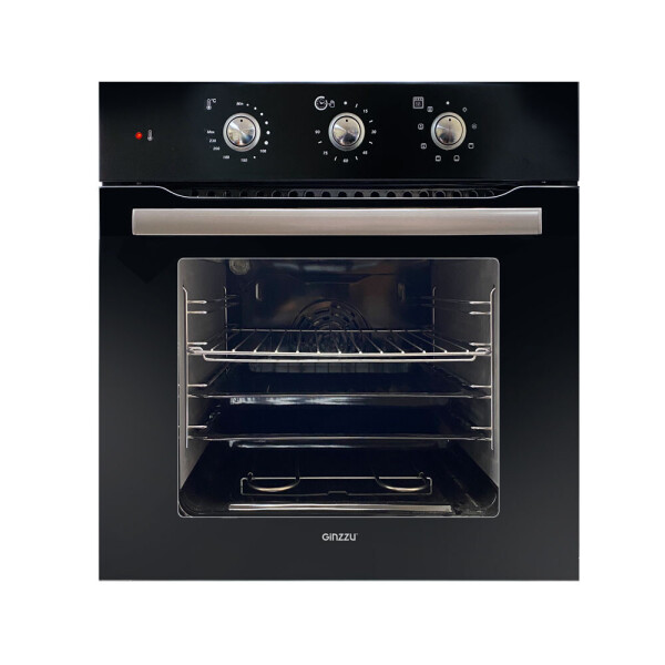 Встраиваемый электрический духовой шкаф Ginzzu HOE-152 выполнен в черном цвете.