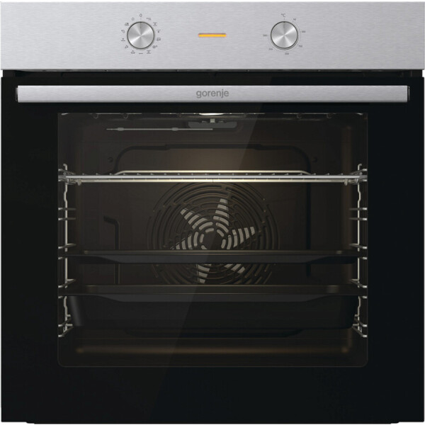 Духовой шкаф Gorenje BO6717E03X выполнен в классическом стиле и цвете под нержавеющую сталь.