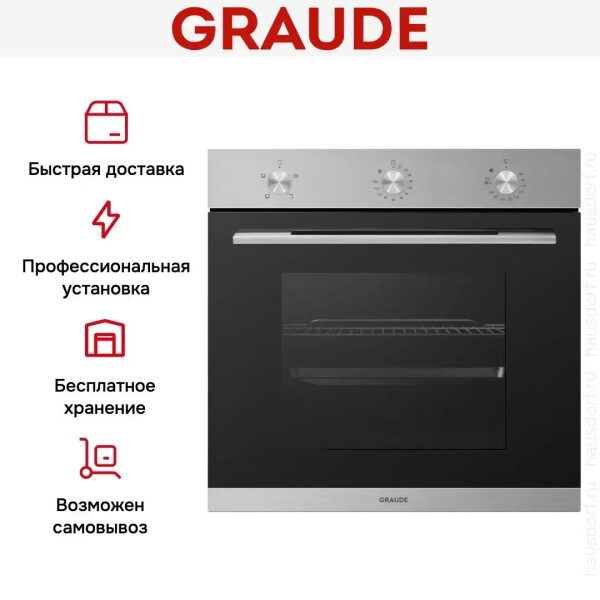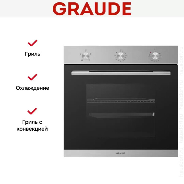 Дверца с двухслойным остеклением и система охлаждения гарантируют безопасность эксплуатации. В комплект входят: универсальный противень и решетка для жарки.