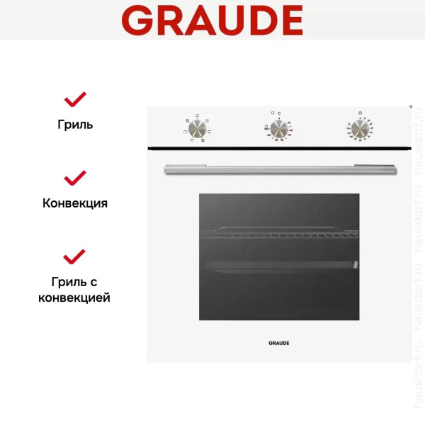 Дизайн:Духовой шкаф Graude BE 60.2 W представлен в белом цвете и входит в коллекцию COMFORT.