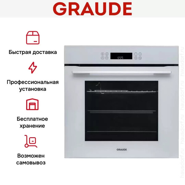Дизайн: Духовой шкаф Graude BM 60.2 W входит в линейку PREMIUM и представлен в элегантном цвете «белое стекло». Оформление ручки и дисплея дополняет образ модели в стиле хай-тек.