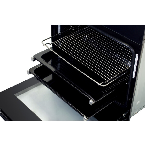Есть гриль и конвекция. Хромированные направляющие. Два противня.