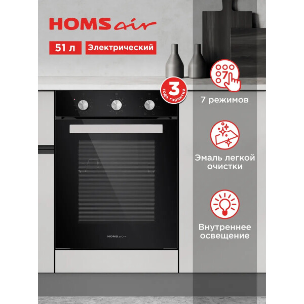 С помощью электрического духового шкафа HOMSair OEF451BK Вы разнообразите свой рацион вкусными и полезными блюдами. Это могут быть запеченные овощи, мясо, в том числе на гриле или на вертеле, с их помощью у вас получатся сочные, не пересушенные, но и не жирные блюда. Классический черный цвет и стильный дизайн вот то, что позволит модели органично смотреться в пространстве любой современной кухни.
