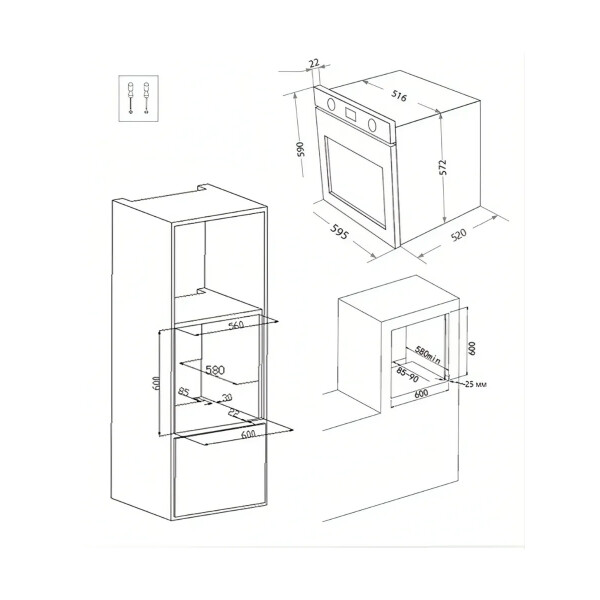 1) традиционный нагрев, 2) конвекционный нагрев, 3) конвекция+гриль, 4) нижний нагрев, 5) ECO энергосберегающий режим, 6) ECO энергосберегающий режим, 7) освещение (внутренний свет включается во время работы духовки)