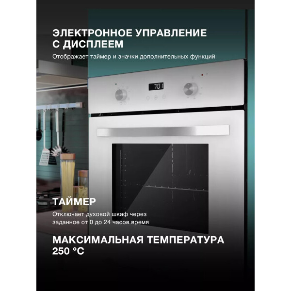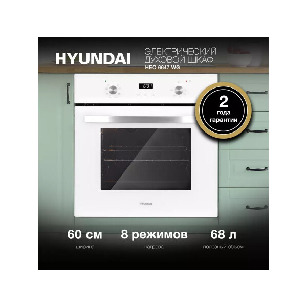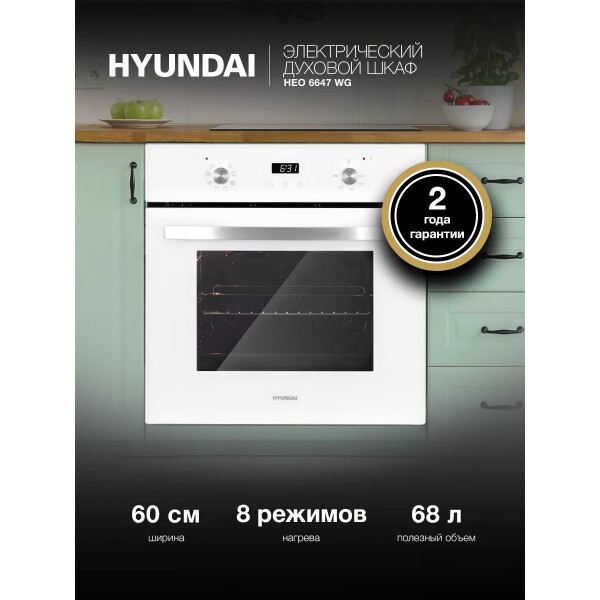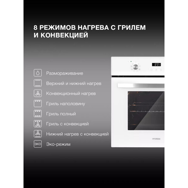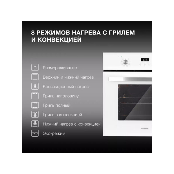 В духовом шкафу HYUNDAI HEO 6647 WG предусмотрено 8 программ, позволяющих приготовить любое блюдо.