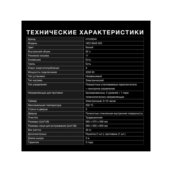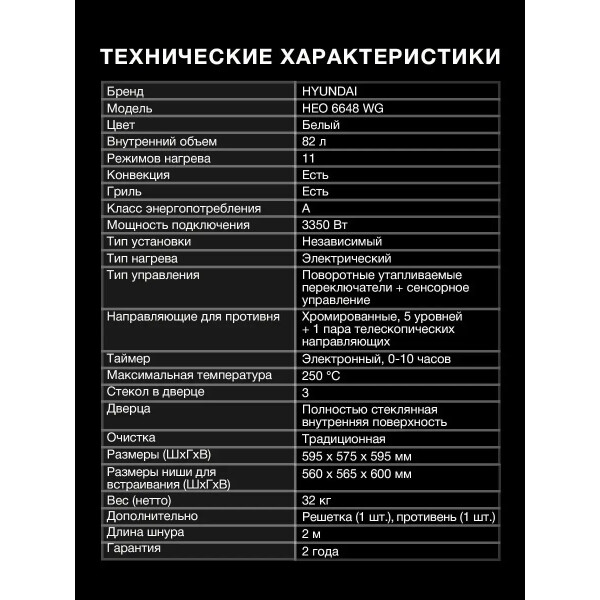Встраиваемый электрический духовой шкаф Hyundai HEO 6648 WG