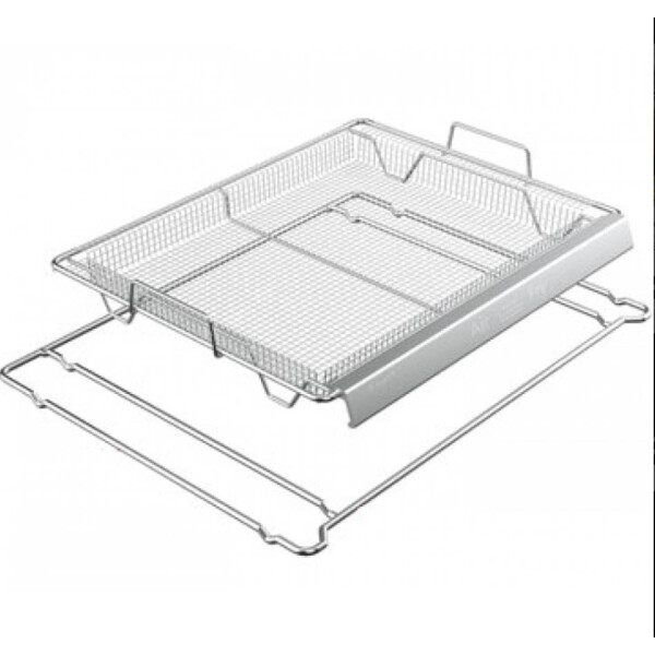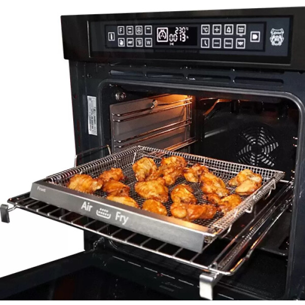 Принцип этого режима заключается в нагревании воздушных потоков и их циркуляции благодаря вентилятору. Скорость постоянно меняется это необходимо, чтобы не произошло пересушивания. Разместите блюдо в специальной сетчатой корзинке и поместите в духовку. Блюдо будет равномерно приготовленным со всех сторон, при этом не требуется добавление в него масла или жира.