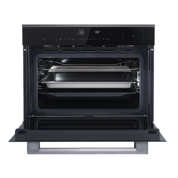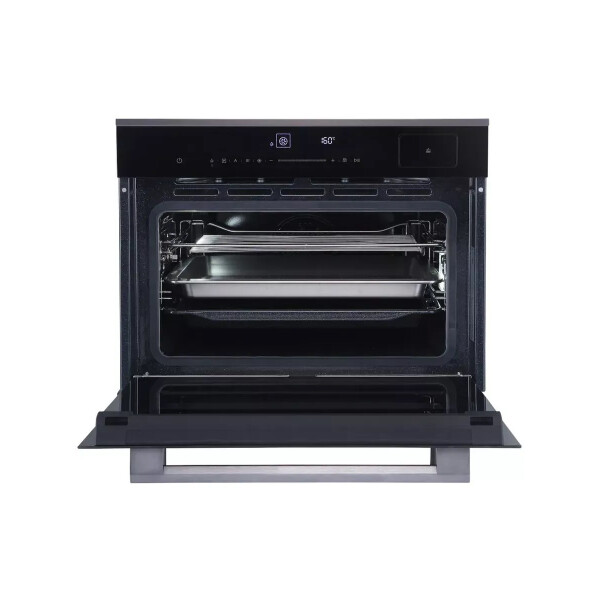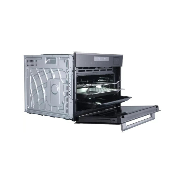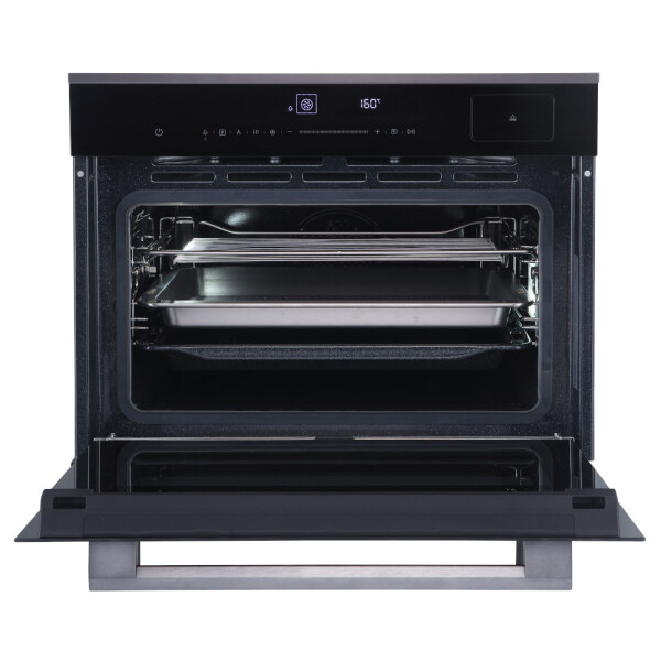 Электронный таймер поможет установить время продолжительности приготовления, после которого духовой шкаф остановит свою работу, а также установить время отложенного старта, который включит духовой шкаф в необходимый момент и самостоятельно отключит его по истечению времени. Электронный таймер позволяет устанавливать акустический сигнал, который подается по истечению заданного времени даже, если духовой шкаф не находится в режиме приготовления. Духовой шкаф отлично подойдет для увеличенных площадей кухонь и больших семей, где блюда готовятся, практически, как в ресторане или мини-пекарне. Инновационное решение конструкции внутренней камеры позволило при стандартных внешних размерах прибора увеличить площадь противней, поэтому теперь на каждом из них можно приготовить больше еды. Специальные материалы стекла обладают свойствами защитного экрана, удерживающего тепло внутри камеры, а конструкция дверцы с применением трех стекол позволяет снизить температуру фронтальной поверхности до минимум а. Все это снижает потребление электроэнергии и делает приготовление полностью безопасным. Благодаря широкому выбору режимов нагрева, Вы не ограничиваете свою кулинарную фантазию. Готовьте все, что угодно и так, как Вам нравится Специальный тангенциальный вентилятор установлен во всех духовых шкафах Krting. Боковые стенки духового шкафа постоянно охлаждаются благодаря циркуляции холодного воздуха. Использование системы автоматического охлаждения позволяет поддерживать температуру боковых поверхностей духового шкафа на низком уровне для безопасного использования в кухонной мебели. Телескопические направляющие надежно удерживают противень на двух уровнях, что дает еще больше безопасности и комфорта противень не нужно удерживать в руках, чтобы проверить качество приготовления блюд.Приготовление на пару это здоровый и натуральный способ приготовления, который полностью сохраняет вкус продуктов.