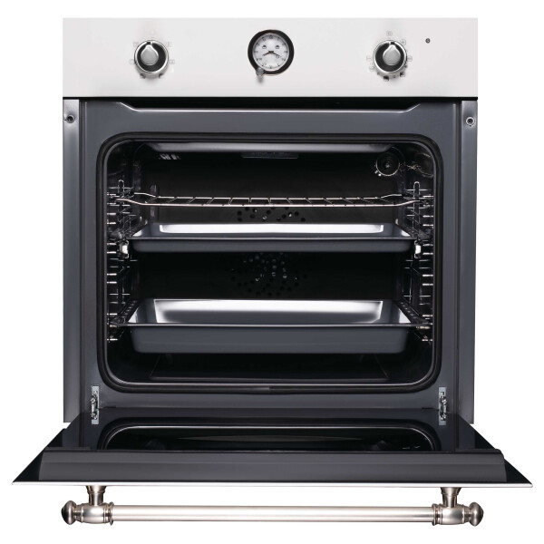 Внешний вид часов, расположенных на панели управления выполнен в классическом, традиционном стиле. Хотя каждый элемент часов от стрелок до цифр выглядит, как и много лет назад, но внутри скрывается высокая функциональность современного электронного таймера, полностью управляющего процессом работы духового шкафа - от включения до автоматического отключения по истечению заданного времени.
