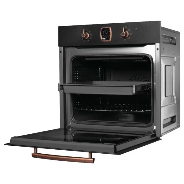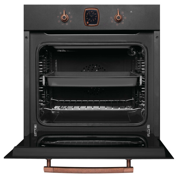 Встраиваемый электрический духовой шкаф Korting OKB 481 CRCN выполнен в классическом дизайне. Внешний вид часов, расположенных на панели управления выполнен в классическом, традиционном стиле. Хотя каждый элемент часов от стрелок до цифр выглядит, как и много лет назад, но внутри скрывается высокая функциональность современного электронного таймера, полностью управляющего процессом работы духового шкафа - от включения до автоматического отключения по истечению заданного времени. Электронный таймер поможет установить время продолжительности приготовления, после которого духовой шкаф остановит свою работу, а также установить время отложенного старта, который включит духовой шкаф в необходимый момент и самостоятельно отключит его по истечению времени. Электронный таймер позволяет устанавливать акустический сигнал, который подается по истечению заданного времени даже, если духовой шкаф не находится в режиме приготовления. Восемь режимов нагрева, сочетающих как классические нагревательные элементы, так и кольцевого нагревателя, в сочетании с конвекционным вентилятором, позволяют готовить самые сложные и необычные блюда.