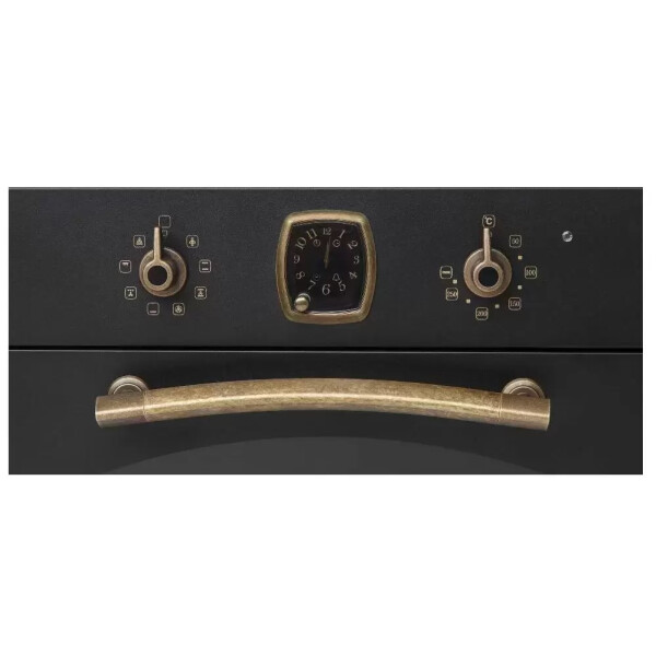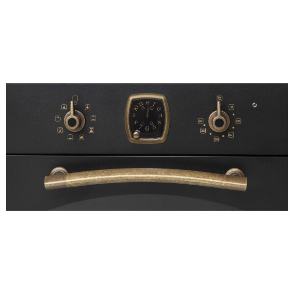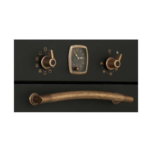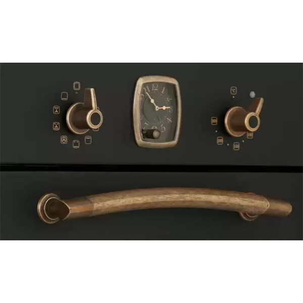Отличительная особенность духового шкафа многофункциональные часы в ретро-стиле с таймером, с помощью которых можно установить время окончания программы. Безопасность и комфорт эксплуатации достигаются за счет функции автоматического отключения и телескопических направляющих, которые обеспечивают устойчивое положение противня.