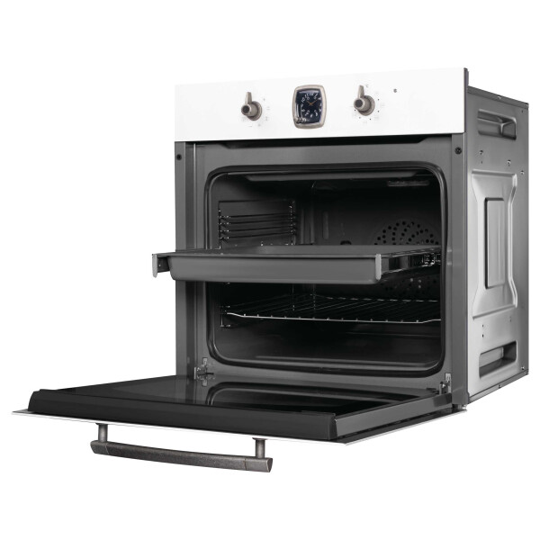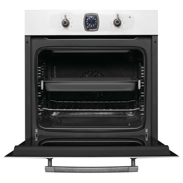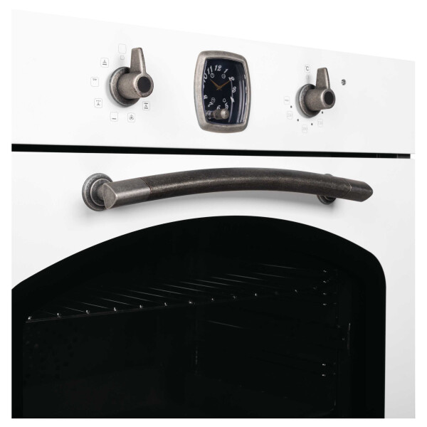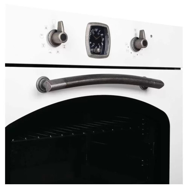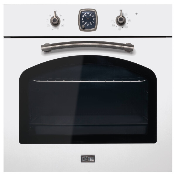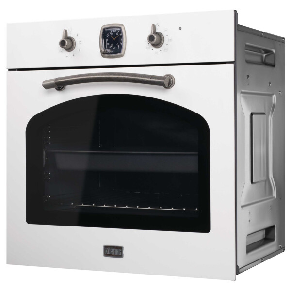 Электрический духовой шкаф Korting OKB 481 CRSI из коллекции Calabria выполнен в цвете античный белый с фурнитурой состаренное серебро. Сочетание необычных оттенков и ретро-дизайна делают эту модель особенной. Управление прибором осуществляется при помощи поворотных переключателей, таймер выпускается швейцарской часовой компанией Franck Muller. Телескопические направляющие на 1 уровне делают использование еще удобнее, так как они удерживают противни при выдвигании. Тройное остекление дверцы и вентиляция сохраняют фронтальную поверхность прохладной.
