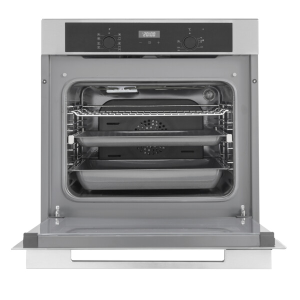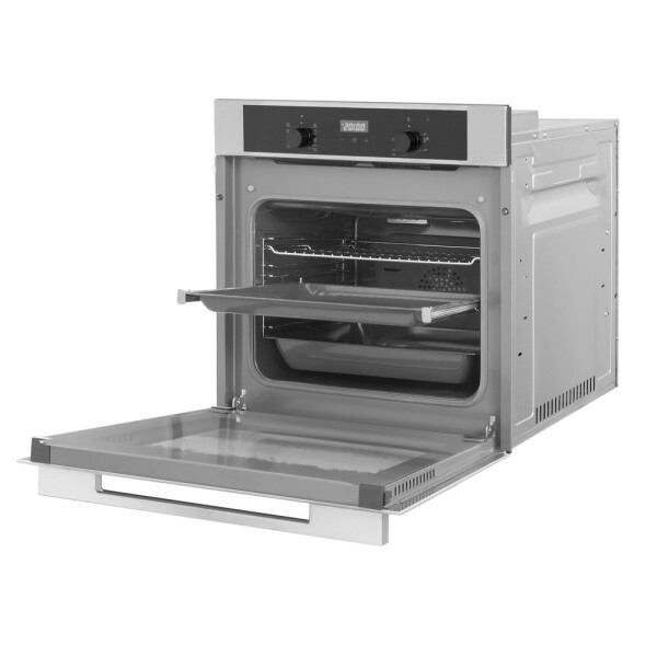 Специальный режим поможет очистить поверхность камеры благодаря использованию пара и влаги. Достаточно выбрать программу очистки Steam Cleaning и температура нагрева и длительность работы будут установлены автоматически. По завершению процесса достаточно будет промыть поверхность влажной тканью. В большинстве случаев даже не используя химические средства! При нажатии на поворотный регулятор, он фиксируется внутри панели управления, создавая прямую и ровную поверхность. Это делает невозможным случайный поворот регулятора, а также облегчает последующую очистку фронтальной панели. Спрятать регуляторы можно даже во время приготовления. Девять режимов, основанных на комбинации различных нагревательных элементов, позволяют приготовить совершенно любое блюдо, независимо от сложности его приготовления. Разнообразие возможностей поможет расширить кулинарные навыки или усовершенствовать существующие. Специальная функция, которая автоматически отключает духовой шкаф в случае, если пользователь забыл это сделать сам. Время экстренного отключения зависит от заранее выбранной температуры. Можно быть полностью уверенным в безопасности приготовления.