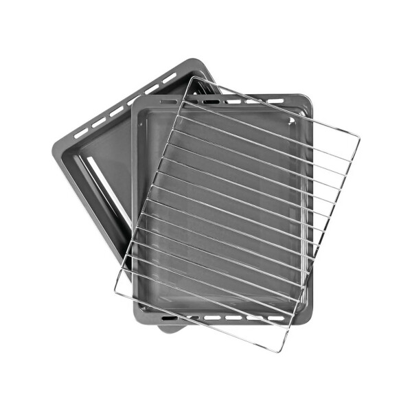 Внутренняя поверхность духовки выполнена из эмали серого цвета с белыми вкраплениями MetallicGrey, которая смотрится стильно и современно и легко очищается от загрязнений, что повышает удобство обслуживания. В комплект духового шкафа входят телескопические направляющие, которые позволяют быстро и просто установить крупногабаритную посуду, и стеклянный противень, который может быть использован при сервировке для сохранения целостности блюда.