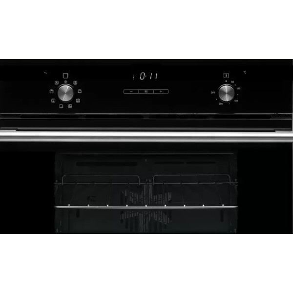 Данная модель оснащена дисплеем ColdWhite, который хорошо виден под любым углом и гармонично сочетается с дизайном духовки. К числу преимуществ духового шкафа, помимо эстетичного внешнего вида, можно отнести практичность: в режиме горячий воздух работают кольцевой нагревательный элемент и вентилятор для одновременного приготовления на всех уровнях.
