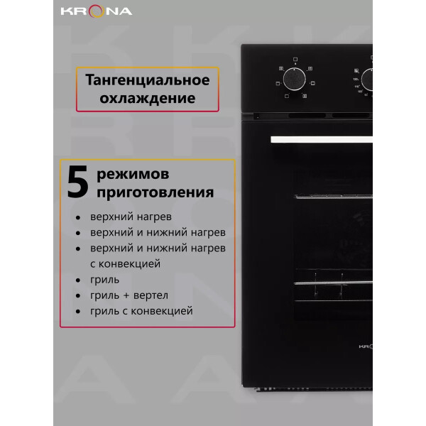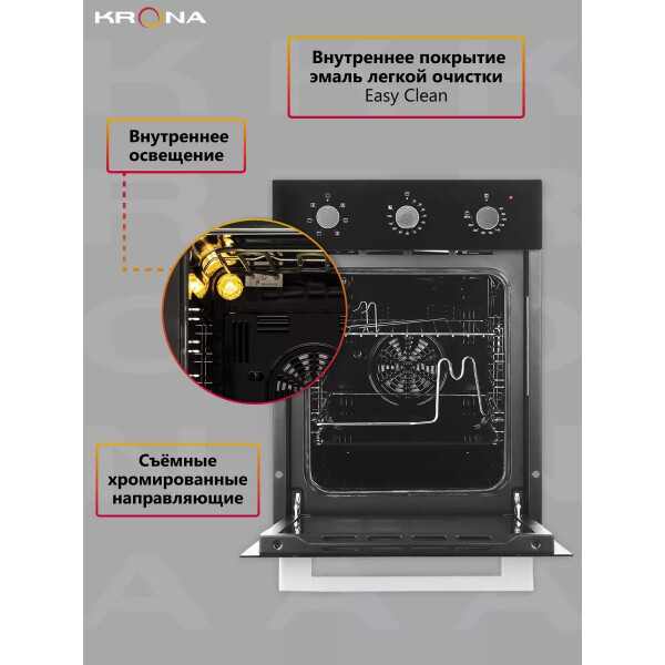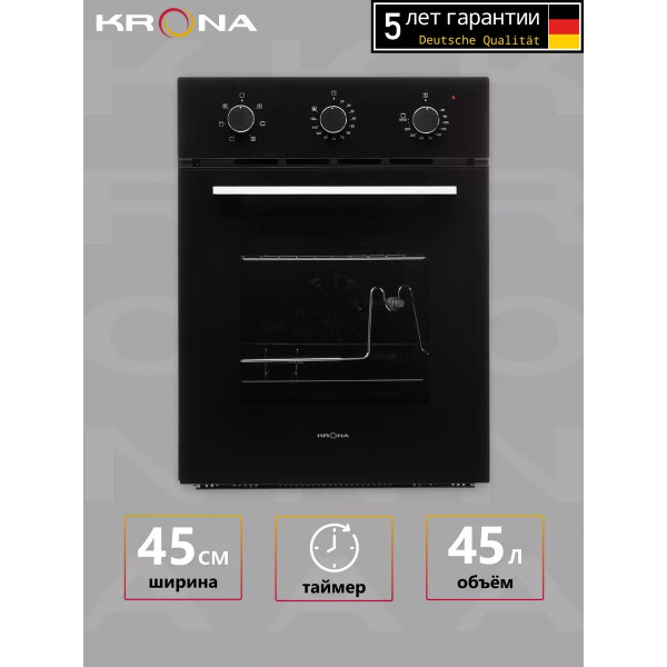 Встраиваемый электрический духовой шкаф Kronasteel Corrente 45 - компактная модель, которая станет функциональным и стильным помощником на Вашей кухни.ru/catalog/product/elektricheskiy-duhovoy-shkaf-krona-corrente-45-wh>. Вы сможете выбрать один из шести режимов нагрева: Верхний и нижний нагрев, Верхний и нижний нагрев с конвекцией, Верхний нагрев, Гриль, Гриль + вертел, Гриль с конвекцией.