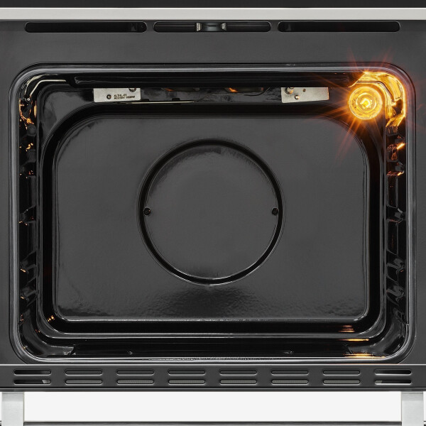 Духовой шкаф отлично подойдет для семей с маленькими детьми, так как он оснащен дверцей с тройным остеклением Cool touch glass, которое предупреждает сильный нагрев дверцы шкафа.