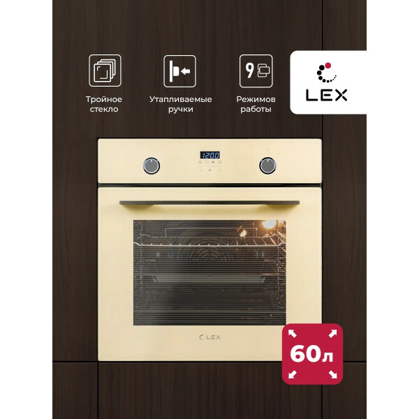 Электрический духовой шкаф Lex EDP 092 IV объемом 60 литров, отличный выбор для тех, кто предпочитает в бытовой технике сочетание многофункциональности и элегантного дизайна.