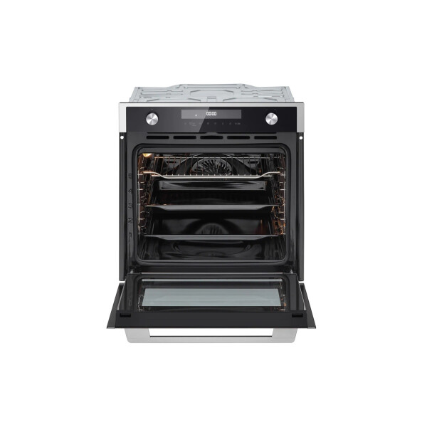 Внутренний объем камеры соответствует 72 л, что позволяет получить достаточно пространства для того, чтобы помещать внутрь большие блюда с подготовленными продуктами для запекания. Модель поддерживает регулировку температуры до 250, что делает духовой шкаф идеальным вариантом для семьи, в которой любят экспериментировать.