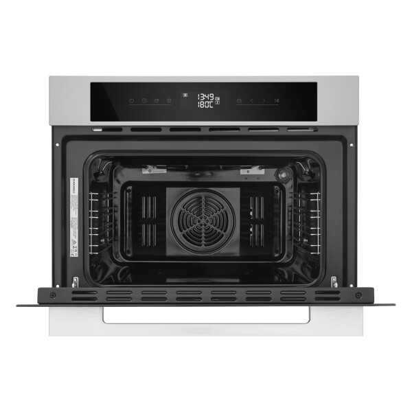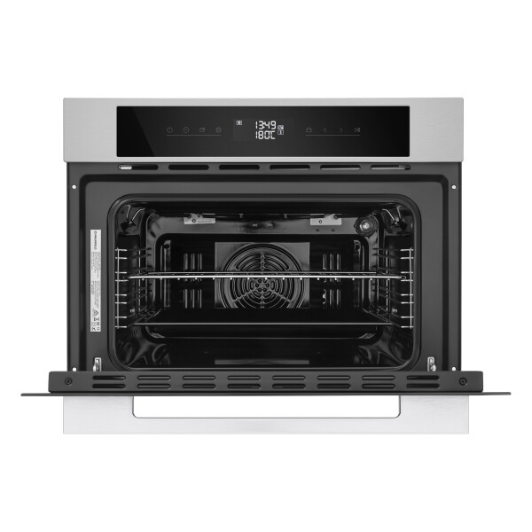 Фронтальная панель сделана из высококачественного жаропрочного стекла . Цельнометаллическая ручка дверцы из матированной нержавеющей стали лаконично поддерживает общий стиль и не нагревается во время готовки.