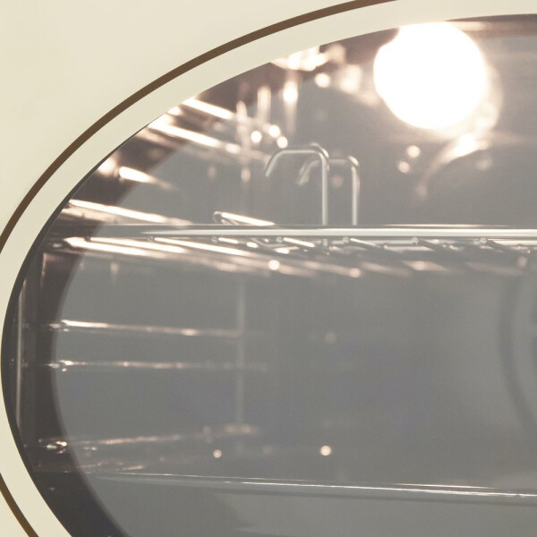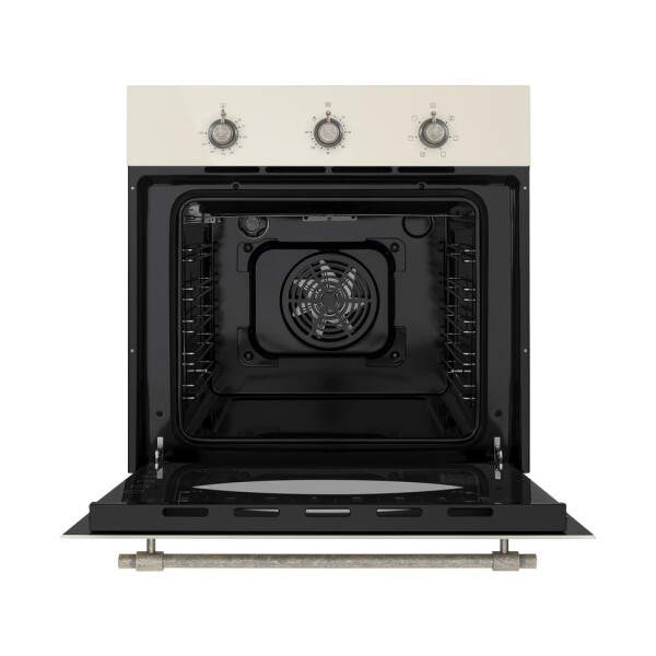 Особенности: двойное стекло дверцы, холодный фронт, цельнометаллические ручки управления и дверцы, механический таймер, черная эмаль лёгкой очистки