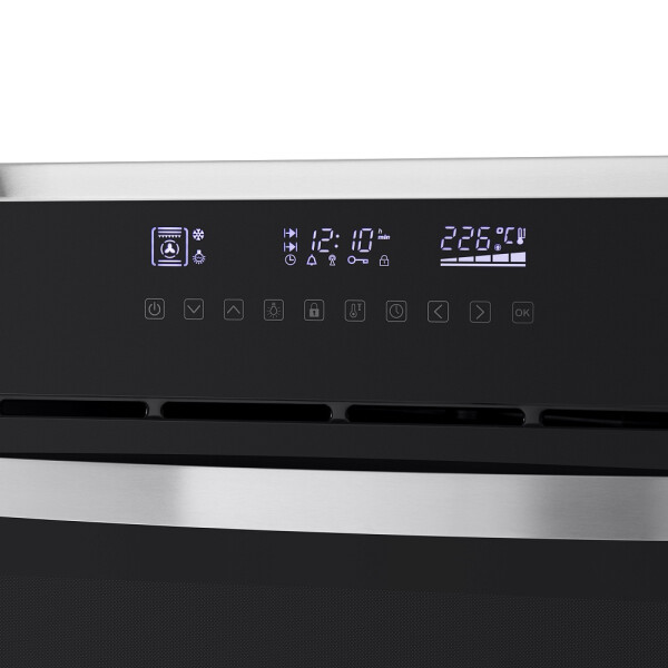 Духовка оснащена современным сенсорным программатором с дисплеем ''Cold White'', интуитивно понятным и удобным в использовании.