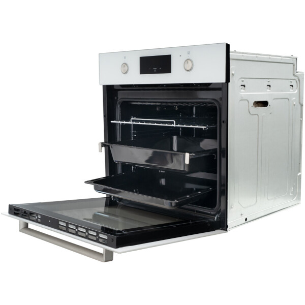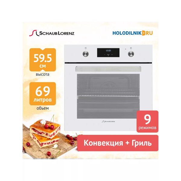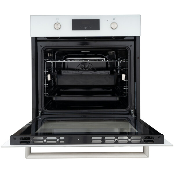 Духовой шкаф относится к стандартному типу духовок с шириной 59,5 см. Режимы духовки позволяют выбрать между разными комбинациями верхнего, нижнего нагревов, конвекции и гриля.