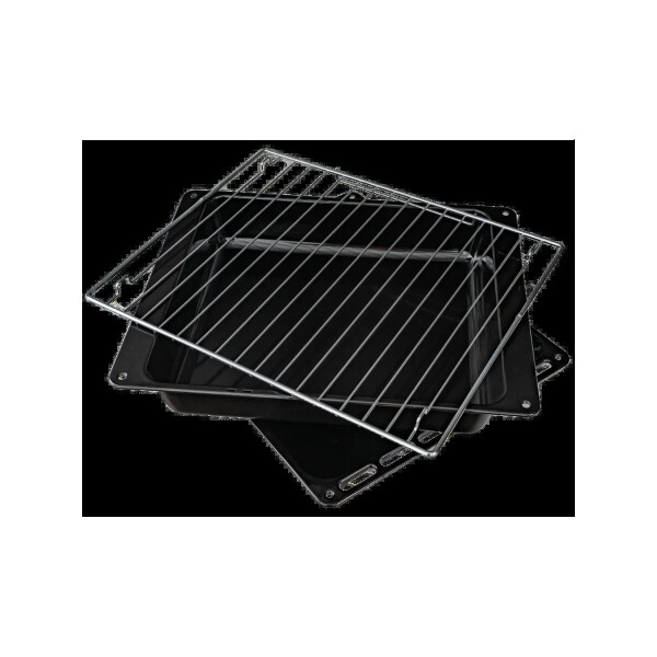 В комплекте: глубокий противень, прямоугольный противень и хромированная решетка.