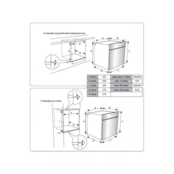 | Высота встраивания | 60