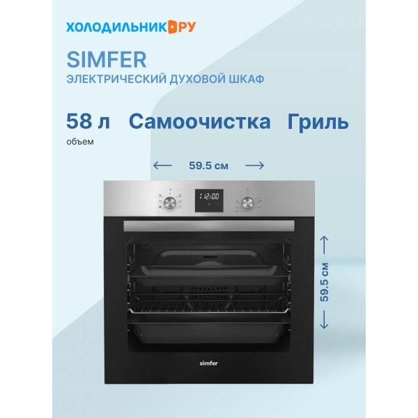 Электрический духовой шкаф Simfer B6EM56016 - современная техника для кухни, которая благодаря многообразию режимов, позволяет готовить не только повседневную пищу, но и изысканные блюда. Она снабжена функцией конвекции, которая равномерно распределяя теплый воздух, пропекает блюдо со всех сторон. С помощью удобных поворотных ручек легко выбрать необходимый режим приготовления для любого рецепта. Встроенная подсветка позволит наблюдать за процессом, не открывая при этом дверцу шкафа, а значит сохраняя тепло внутри.Таймер подскажет, когда блюдо будет готово, а тройное стекло защитит от ожога при случайном прикосновении к дверце шкафа. Эта простая в управлении, стильная и современная техника прекрасно впишется как в классический интерьер, так и в самый современный.