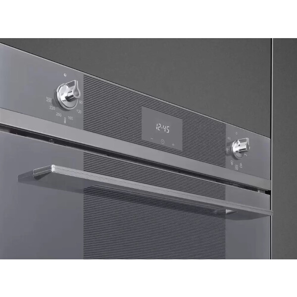 Встраиваемый электрический духовой шкаф SMEG SF6100VS1 предназначен для приготовления огромного ассортимента блюд, включая выпечку десертов и приготовление гриля. Классический дизайн в современном исполнении с оригинальной фурнитурой позволяет органично вписать оборудование в интерьер. Встраиваемая установка обеспечивает существенную экономию пространства, создавая комфортные условия для готовки даже на небольшой кухне. Многослойное стекло дверцы в сочетании с системой охлаждения существенно снижают температуру внешних поверхностей, гарантируя максимальную безопасность.