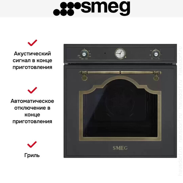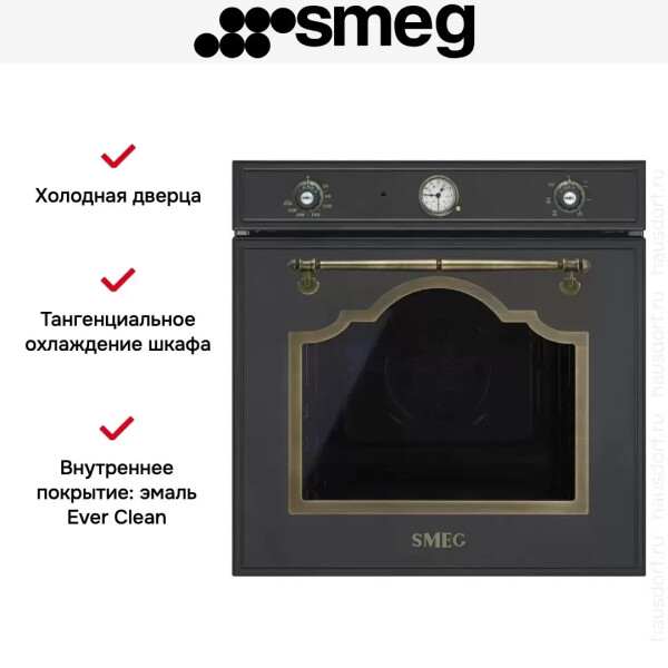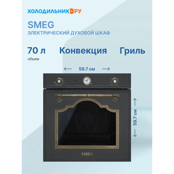 Духовой шкаф Smeg SF700AO из коллекции Cortina впишется в классический интерьер кухни. Режим гриля позволит запечь мясо до хрустящей корочкой и сочностью внутри. Объемная камера на 70 литров поможет готовить оптимальное количество блюд для большой семьи или приема гостей. Эмаль легкой очистки с легкостью отмывается от загрязнений. Внутреннее освещение обеспечит комфортную эксплуатацию.