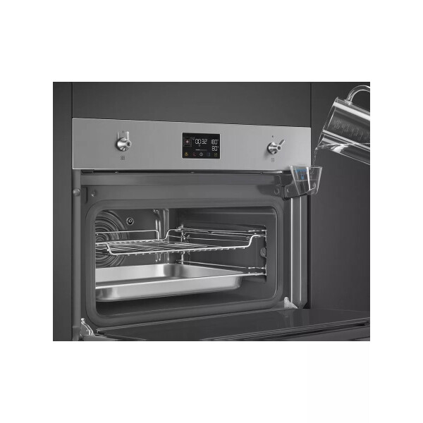 Быстрая и интуитивно понятная система залива воды предназначена для улучшения внешнего вида духовки благодаря встроенному резервуару объемом 800 мл, который не меняет ее внешнего вида. Использование инновационных технологий гарантирует до шести часов автономной работы с одной заливкой воды в начале приготовления.