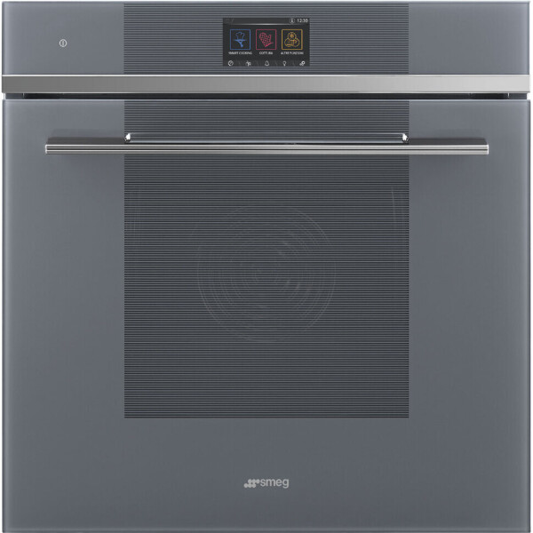 Электрический духовой шкаф Smeg SF6104TPS управляется с помощью сенсорной панели и яркого TFT-дисплея. Полезный объём 70 литров, 5 уровней приготовления. ермощуп входит в комплект. В памяти уже имеется 48 рецептов, к которым можно добавить 64 своих. Электронный контроль температуры не дает показателям упасть или возрасти в процессе выпекания. Термостат можно выставить на значения от 30 до 280 градусов, что обеспечивает не только традиционную готовку, но также размораживание, разогрев уже готовой пищи, поднятие теста.