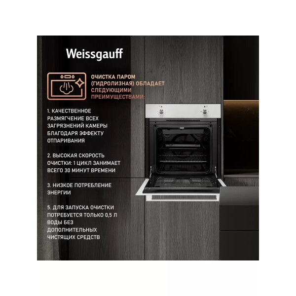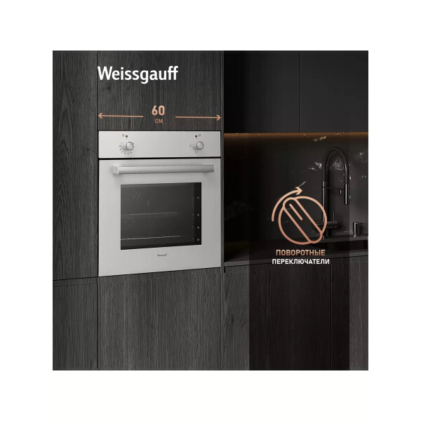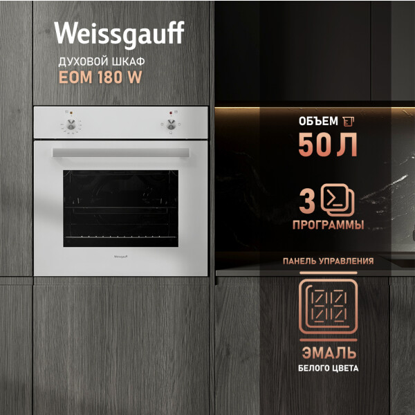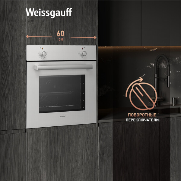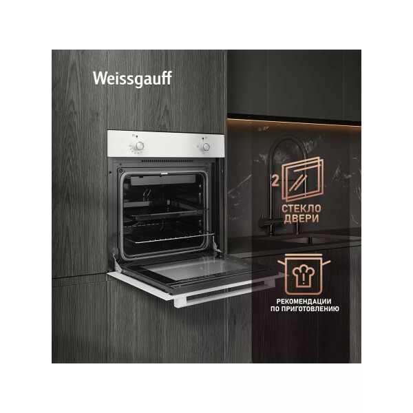 Объем 50 литров дает вам полную уверенность в том, что приобретая этот духовой шкаф, вы сможете разместить в нем сразу весь необходимый объем пищи, и даже профессионально работать на нескольких уровнях одновременно, порадовав себя и своих близких настоящим пиром, приготовленным в духовом шкафу Weissgauff на действительно ресторанном уровне.