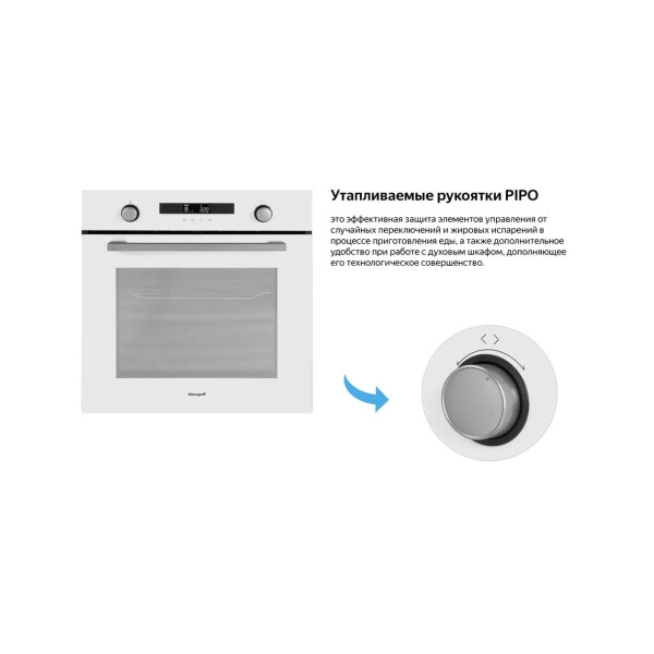 Утапливаемые рукоятки PIPO - это эффективная защита элементов управления от случайных переключений и жировых испарений в процессе приготовления еды, а также дополнительное удобство при работе с духовым шкафом, дополняющее его технологическое совершенство.